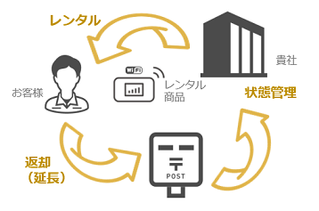 通常のECサイト(ショッピングサイト)とは異なり、レンタルならではの機能として「返却」があります。レンタル商品を契約期間で貸し出しし、期間終了で返却頂くときのプロセスをシステム化することで、レンタルECビジネスの運用や業務負荷の軽減を実現します。